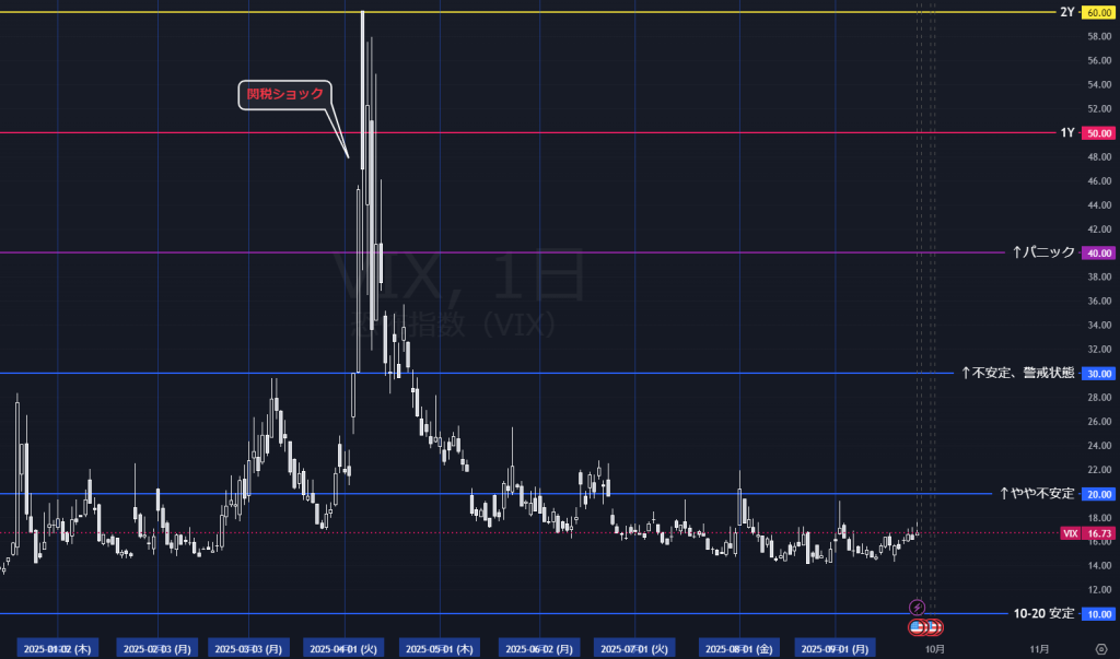 - VIX(恐怖指数):米株のボラティリティ期待を示す指数。高い=リスク回避、低い=安定しやすい。